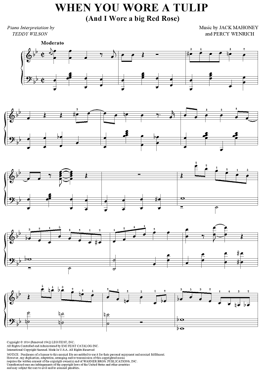 "When You Wore a Tulip (And I Wore a Big Red Rose)" Sheet Music by Teddy Wilson