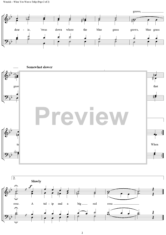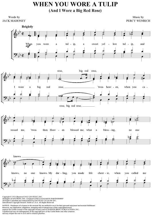 Digital Sheet Music for When You Wore a Tulip by Percy Wenrich, Jack Mahoney scored for Barbershop Quartet; id:240650