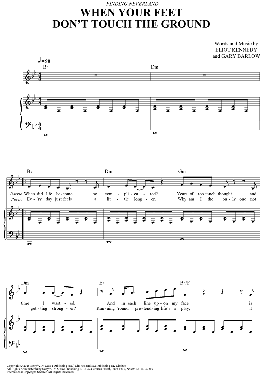 "When Your Feet Don't Touch the Ground" Sheet Music by Gary Barlow