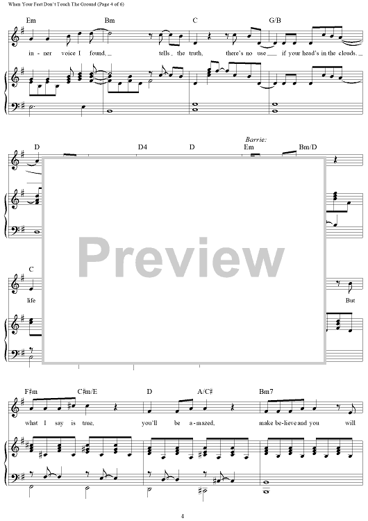 Digital Sheet Music for When Your Feet Don't Touch the Ground by Gary Barlow, Eliot Kennedy scored for Piano/Vocal/Chords; id:457064