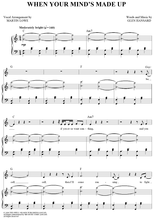 "When Your Mind's Made Up" Sheet Music by Glen Hansard