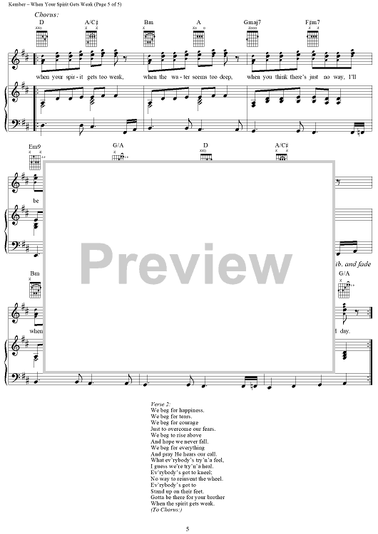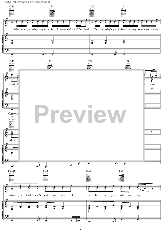 Digital Sheet Music for When Your Spirit Gets Weak by Plus One, Reed Verteiney, Martin Kember, Amy Powers scored for Piano/Vocal/Chords; id:292073