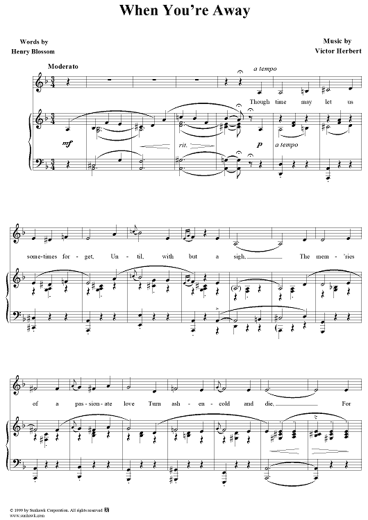 Digital Sheet Music for When You're Away by Victor Herbert scored for Piano/Vocal; id:262974