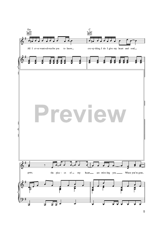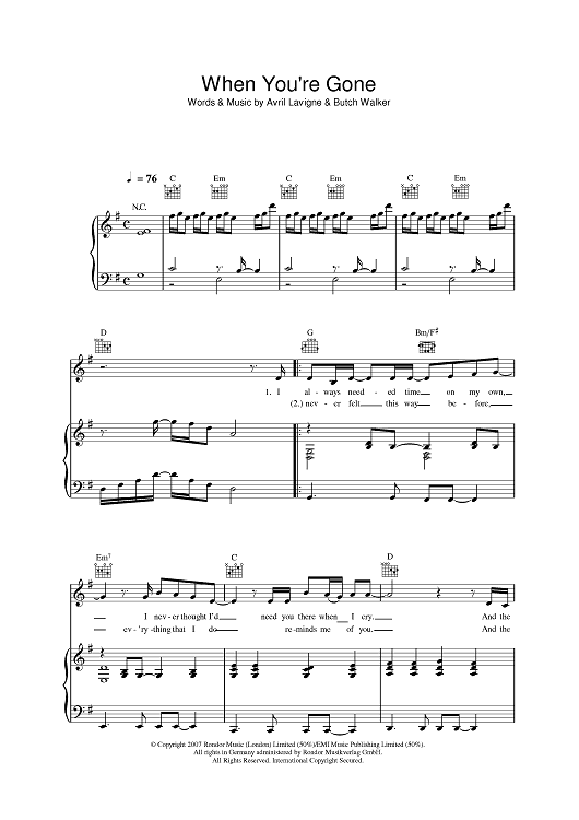 Digital Sheet Music for When You're Gone by Avril Lavigne, Butch Walker scored for Piano/Vocal/Chords; id:401320