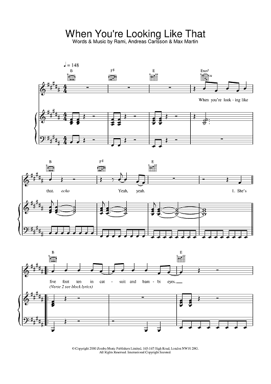 Digital Sheet Music for When You're Looking Like That by Andreas Carlsson, Westlife, Rami Yacoub scored for Piano/Vocal/Chords; id:380014