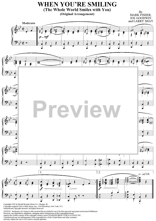 Digital Sheet Music for When You're Smiling (Original Arrangement) by Fats Waller, Mark Fisher, Larry Shay, Joe Goodwin scored for Piano Solo; id:316821