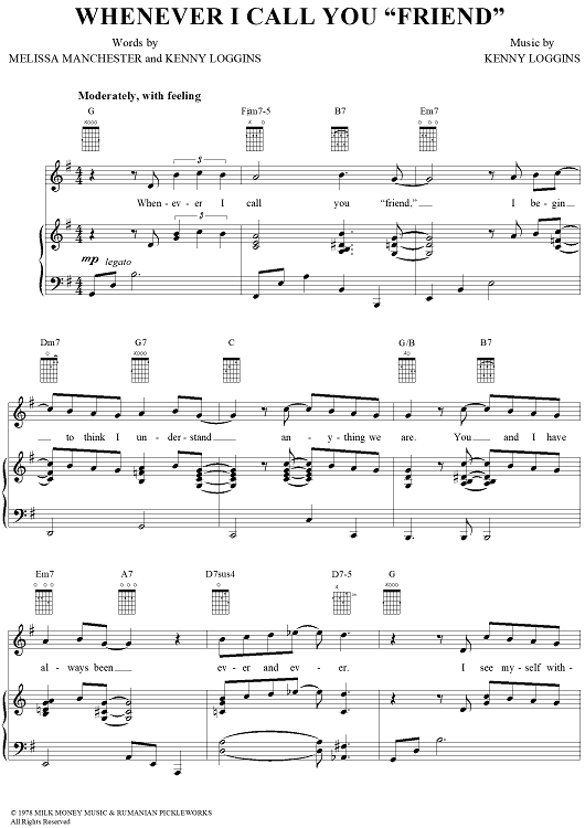 Digital Sheet Music for Whenever I Call You "Friend" by Kenny Loggins, Melissa Manchester scored for Piano/Vocal/Chords; id:111383