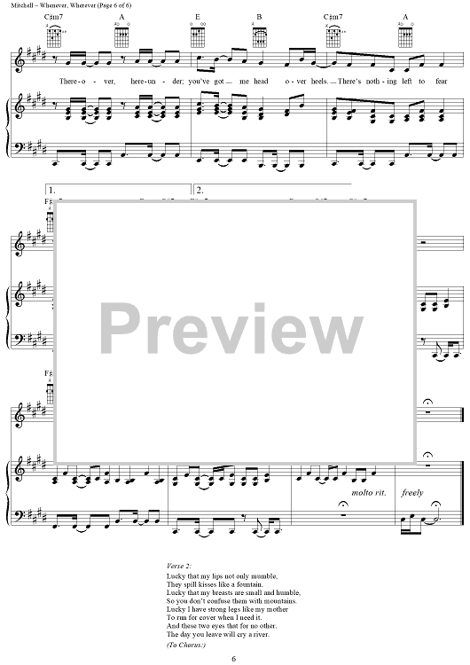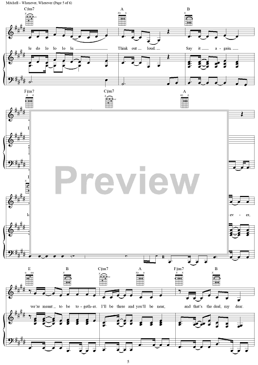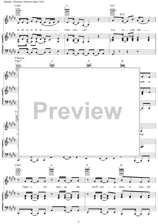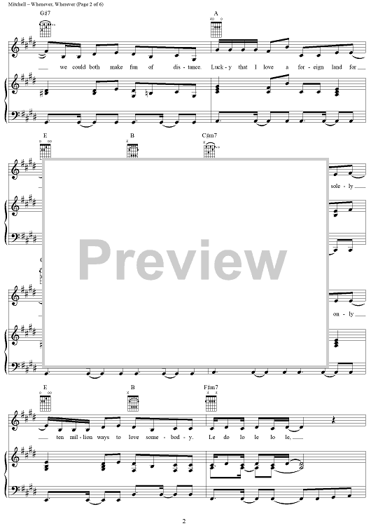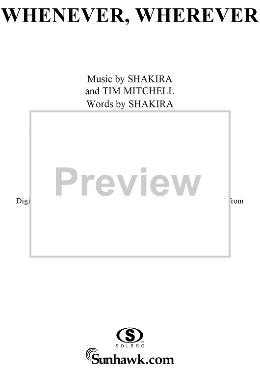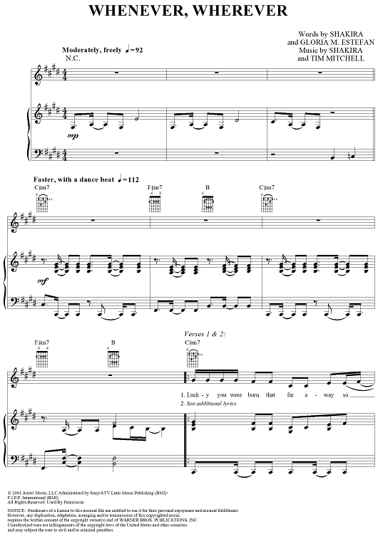 Digital Sheet Music for Whenever, Wherever by Gloria Estefan, Tim Mitchell, Shakira scored for Piano/Vocal/Chords; id:286096