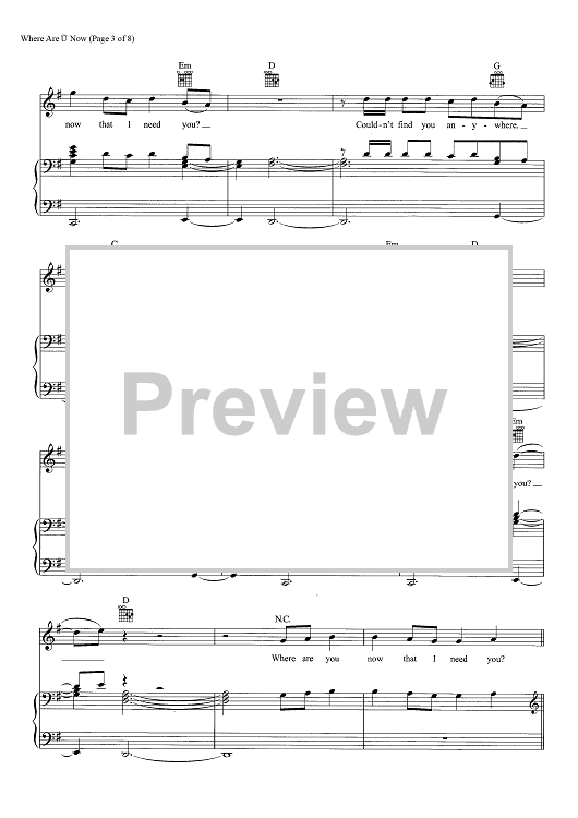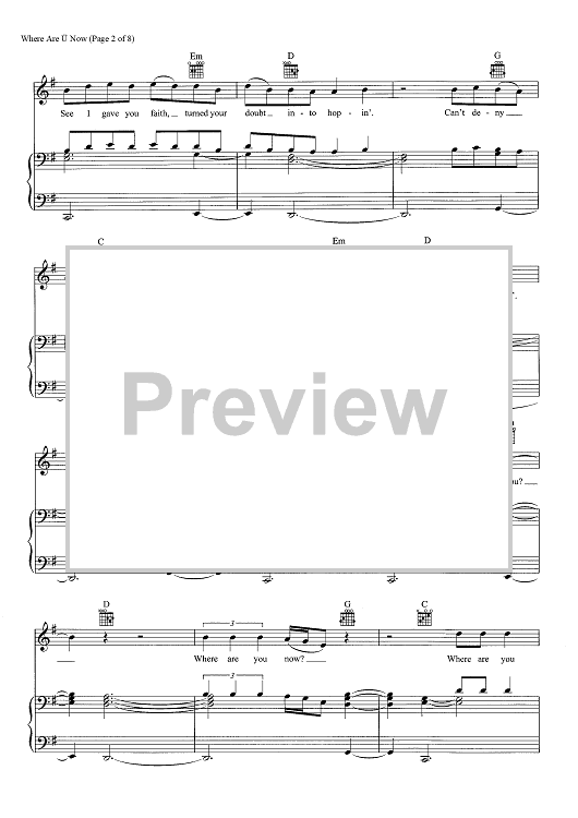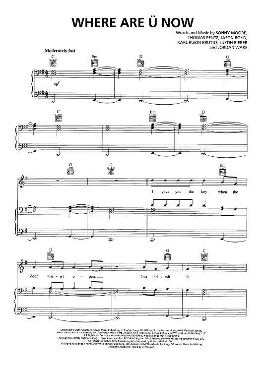 Digital Sheet Music for Where Are U Now by Jason Boyd, Justin Bieber, Thomas Pentz, Sonny Moore, Karl Rubin Brutus scored for Piano/Vocal/Chords; id:457825