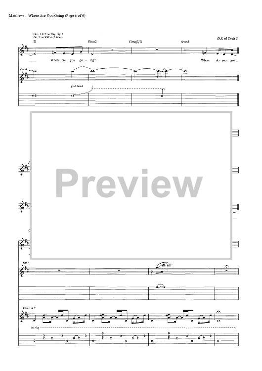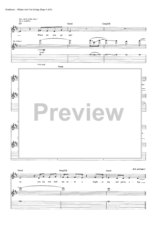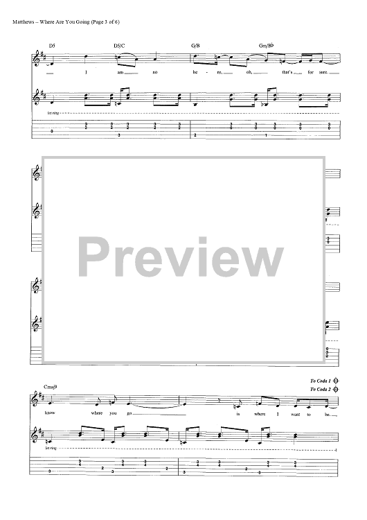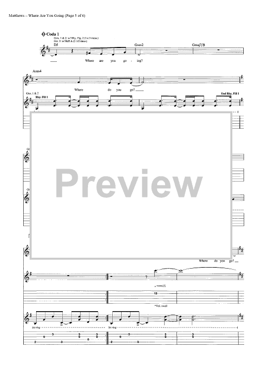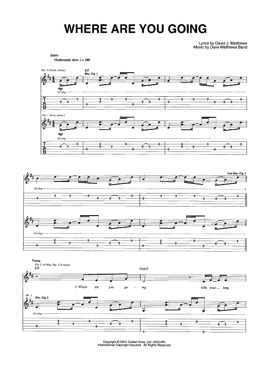 Digital Sheet Music for Where Are You Going by Dave Matthews Band, Dave Matthews scored for Guitar Tab/Vocal; id:448280
