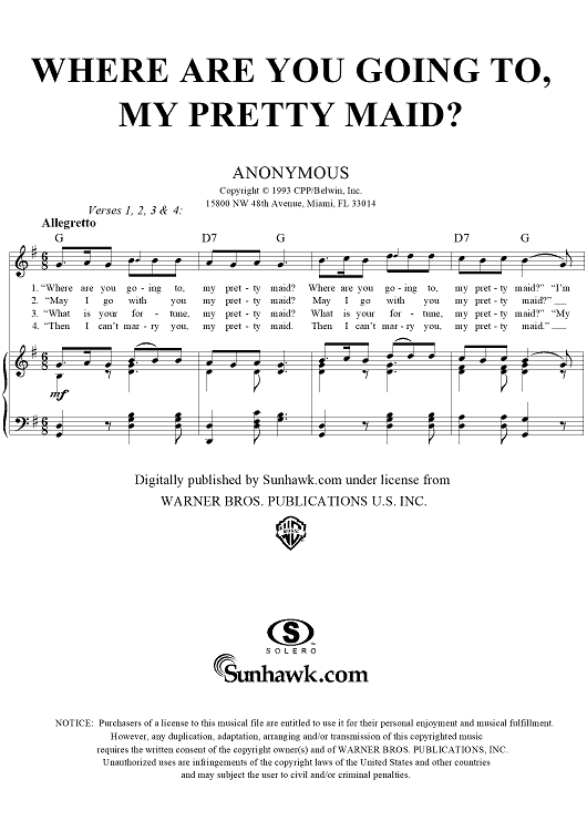 Digital Sheet Music for Where Are You Going To, Pretty Maid? by Unknown Writer scored for Piano/Vocal/Chords; id:277075