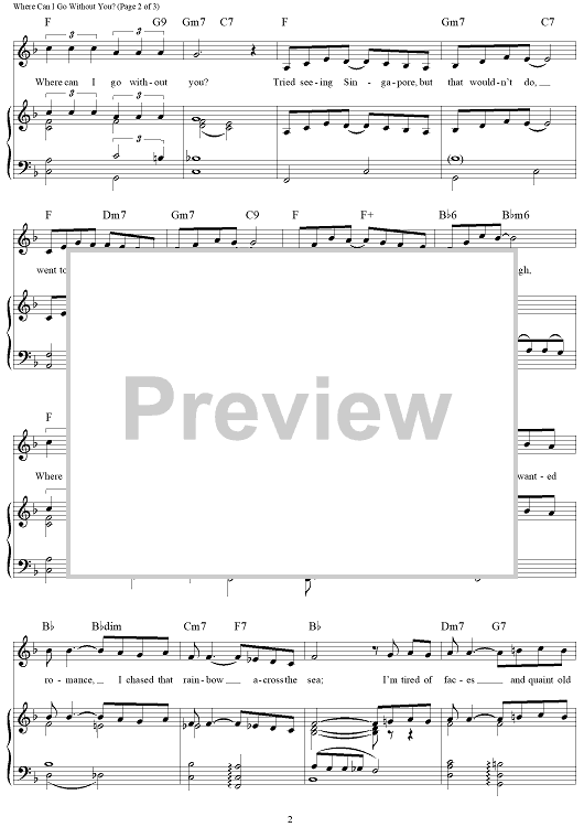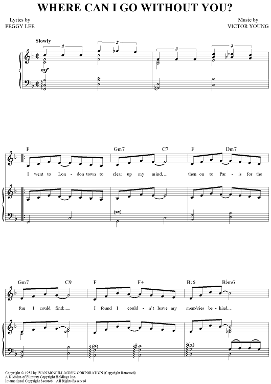 Digital Sheet Music for Where Can I Go Without You? by Nat King Cole, Victor Young, Peggy Lee scored for Piano/Vocal/Chords; id:465775