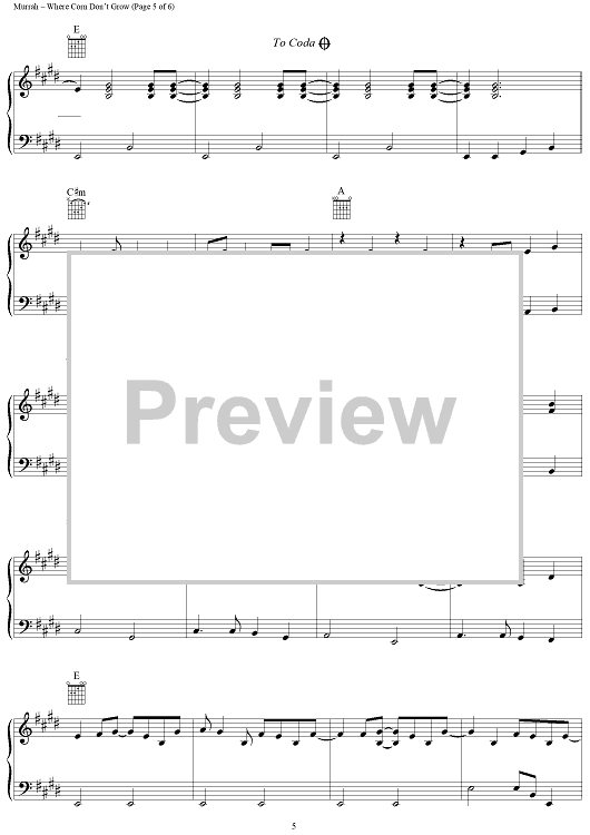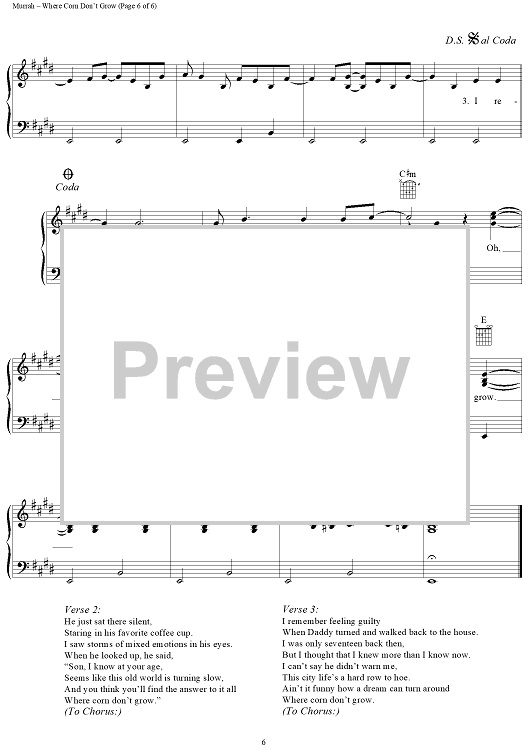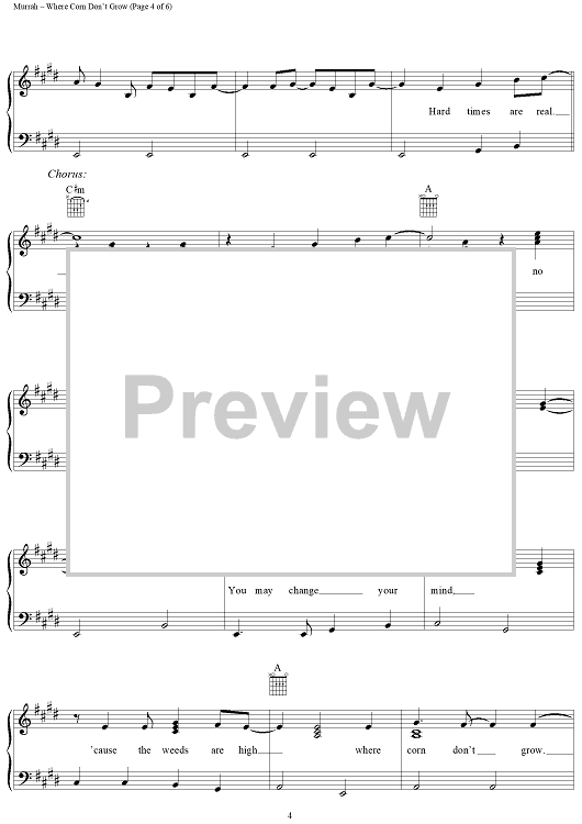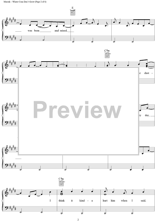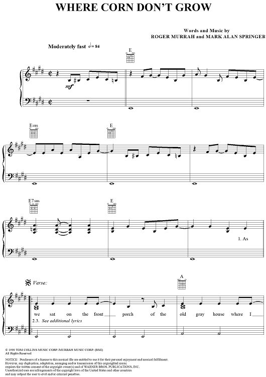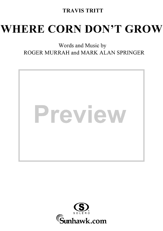 Digital Sheet Music for Where Corn Don't Grow by Travis Tritt, Roger Murrah, Mark Alan Springer scored for Piano/Vocal/Chords; id:112288