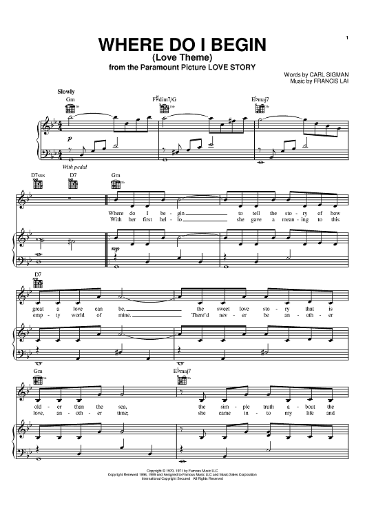 Digital Sheet Music for Where Do I Begin? by Andy Williams, Carl Sigman, Francis Lai, Shirley Bassey scored for Piano/Vocal/Chords; id:368091