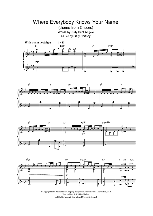 Digital Sheet Music for Where Everybody Knows Your Name by Gary Portnoy, Judy Hart Angelo scored for Piano; id:384742