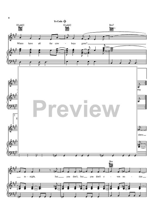 "Where Have All The Cowboys Gone?" Sheet Music by Cole Paula