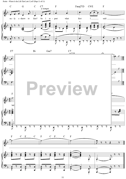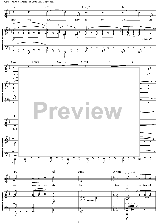 Digital Sheet Music for Where Is the Life That Late I Led? by Cole Porter scored for Piano/Vocal/Chords; id:297863
