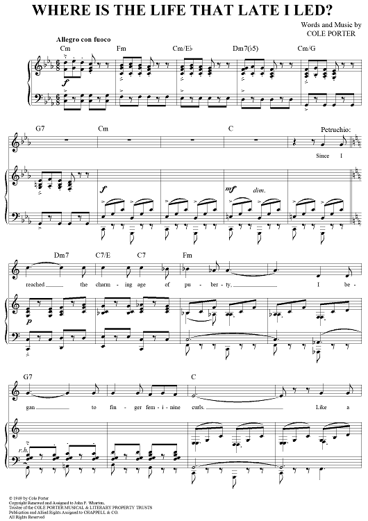 "Where Is the Life That Late I Led?" Sheet Music by Cole Porter