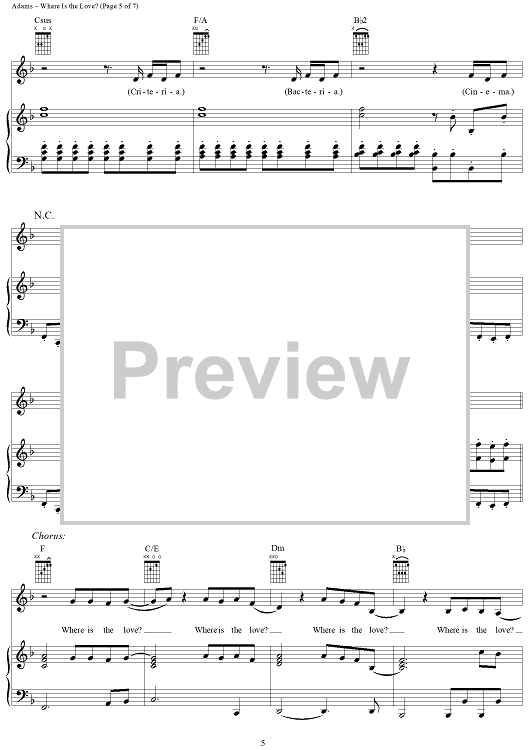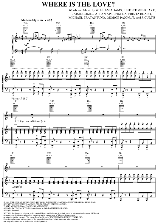 Digital Sheet Music for Where Is the Love? by Jaime Gomez, Allan Apll Pineda, Printz Board, Michael Fratantuno, J. Curtis, will.i.am, Black Eyed Peas, George Pajon Jr., Justin Timberlake scored for Piano/Vocal/Chords; id:297314