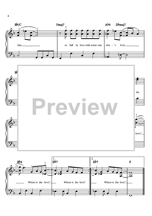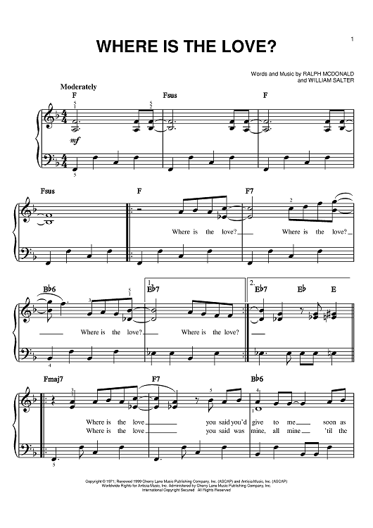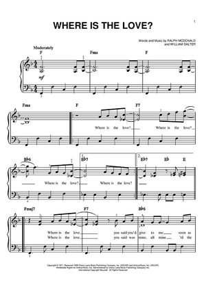 Digital Sheet Music for Where Is The Love? by Donny Hathaway, William Salter, Roberta Flack, Ralph MacDonald, Will Downing scored for Easy Piano; id:373684