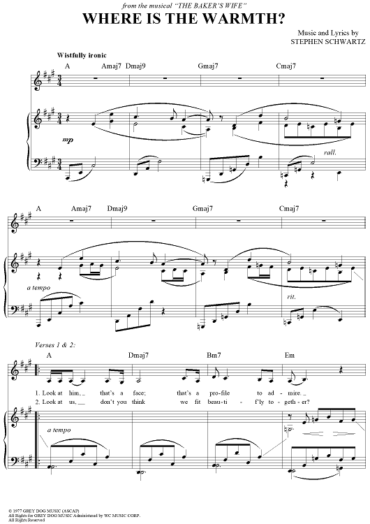 "Where Is the Warmth?" Sheet Music by Stephen Schwartz