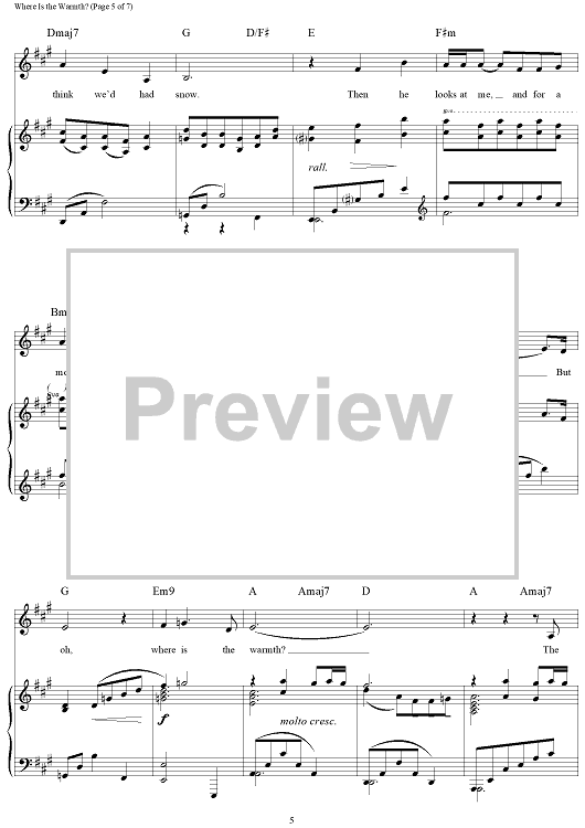 Digital Sheet Music for Where Is the Warmth? by Stephen Schwartz scored for Piano/Vocal/Chords; id:288228
