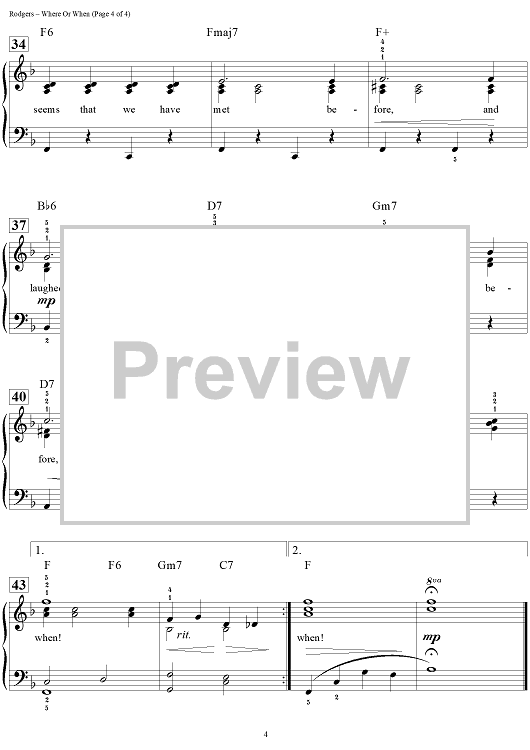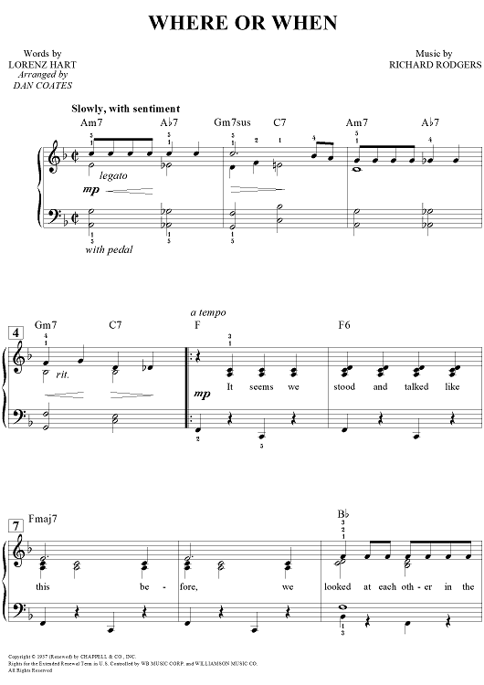 Digital Sheet Music for Where Or When by Dan Coates, Richard Rodgers, Lorenz Hart scored for Easy Piano/Vocal/Chords; id:456663