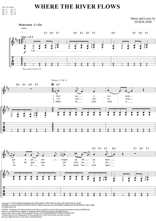Digital Sheet Music for Where the River Flows by Collective Soul, Ed Roland scored for Guitar Tab/Vocal; id:287048