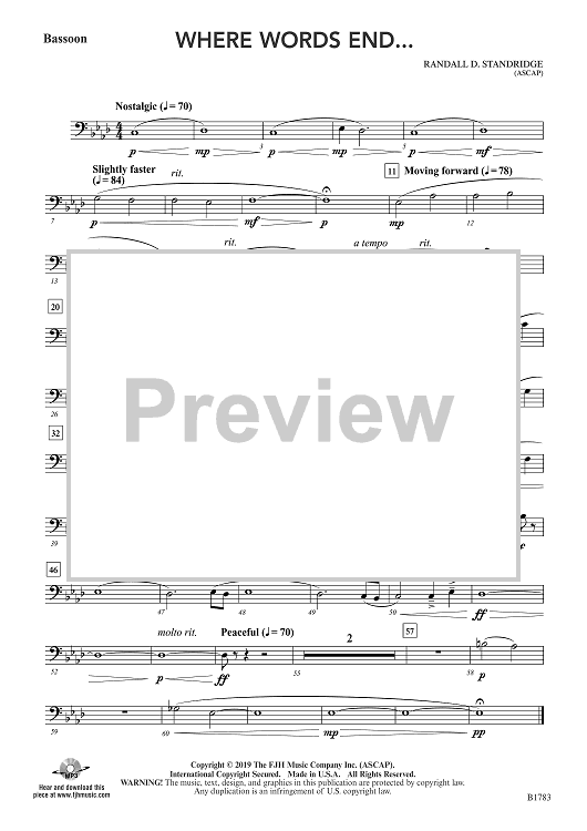 Digital Sheet Music for Where Words End... - Bassoon by Randall D. Standridge scored for Concert Band; id:508436