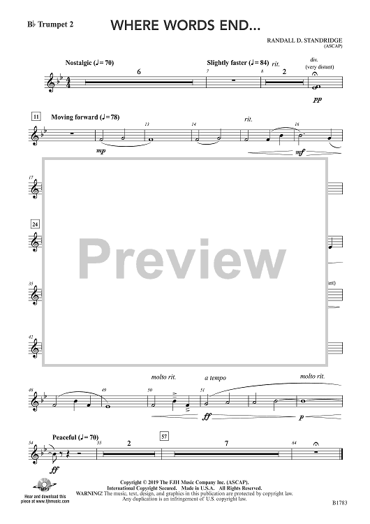 "Where Words End... - Bb Trumpet 2" Sheet Music by Randall D. Standridge