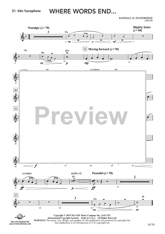 Digital Sheet Music for Where Words End... - Eb Alto Saxophone by Randall D. Standridge scored for Concert Band; id:508440