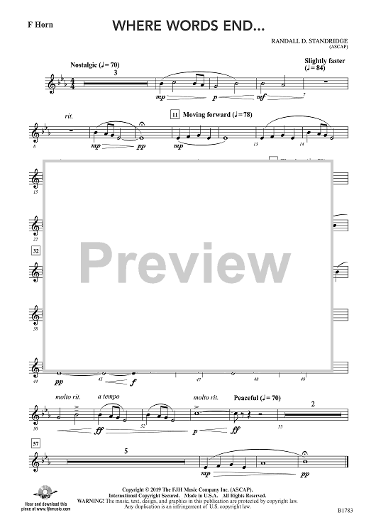 Digital Sheet Music for Where Words End... - F Horn by Randall D. Standridge scored for Concert Band; id:508445