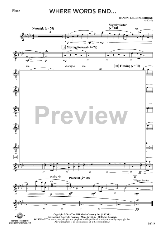 "Where Words End... - Flute" Sheet Music by Randall D. Standridge
