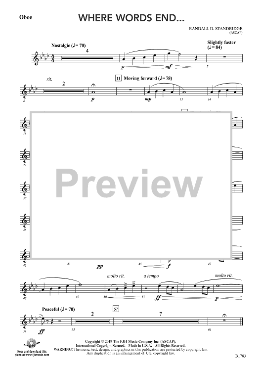 Digital Sheet Music for Where Words End... - Oboe by Randall D. Standridge scored for Concert Band; id:508435