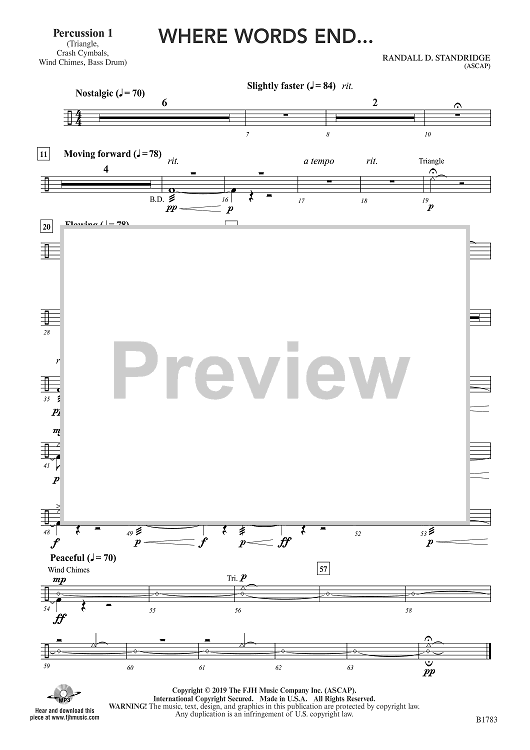 Digital Sheet Music for Where Words End... - Percussion 1 by Randall D. Standridge scored for Concert Band; id:508454