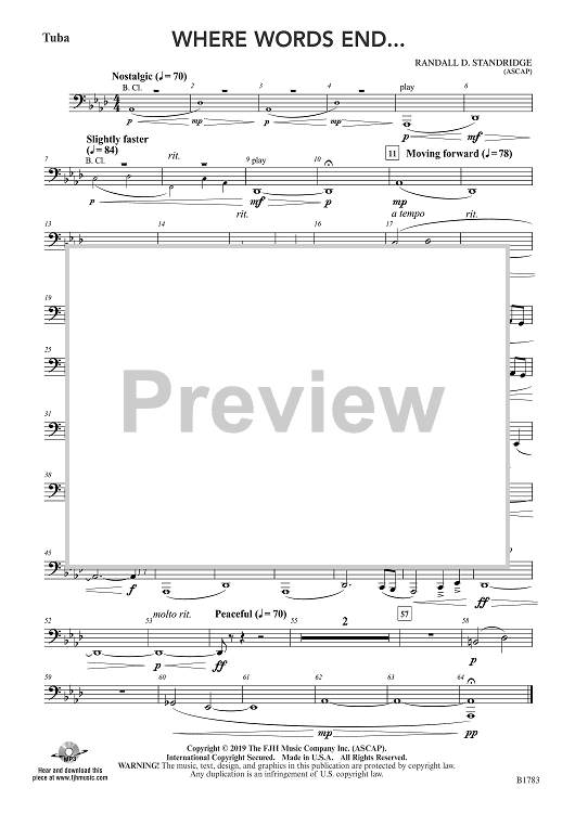Digital Sheet Music for Where Words End... - Tuba by Randall D. Standridge scored for Concert Band; id:508450