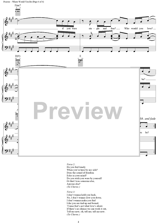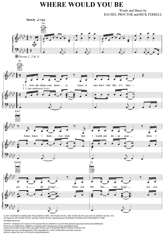 Digital Sheet Music for Where Would You Be by Martina McBride, Rachel Proctor, Rick Ferrell scored for Piano/Vocal/Chords; id:293384
