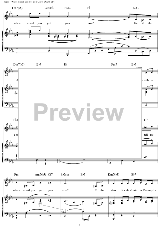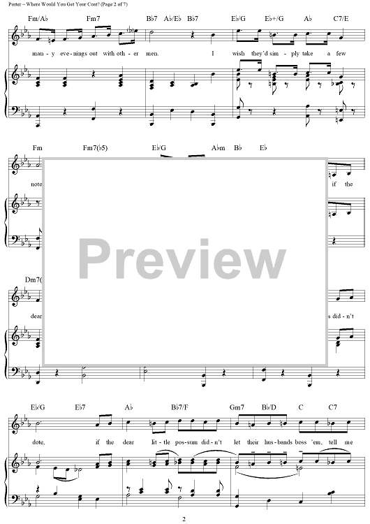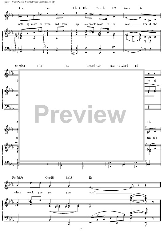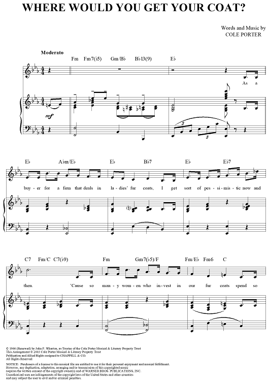 Digital Sheet Music for Where Would You Get Your Coat? by Cole Porter scored for Piano/Vocal/Chords; id:303071