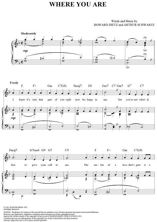 Digital Sheet Music for Where You Are by Howard Dietz, Arthur Schwartz scored for Piano/Vocal/Chords; id:315565