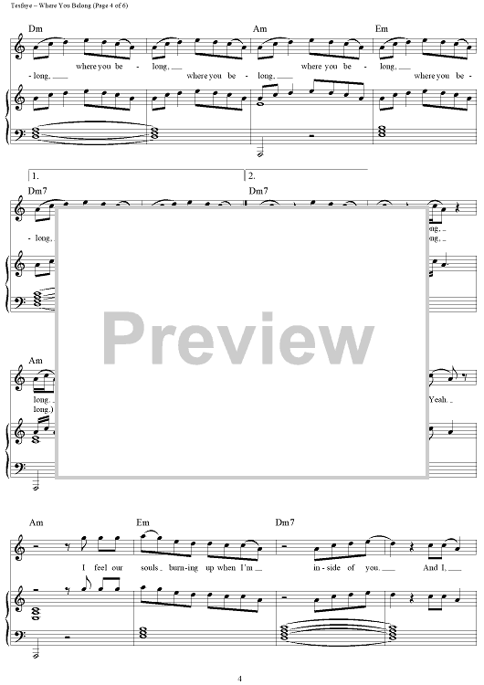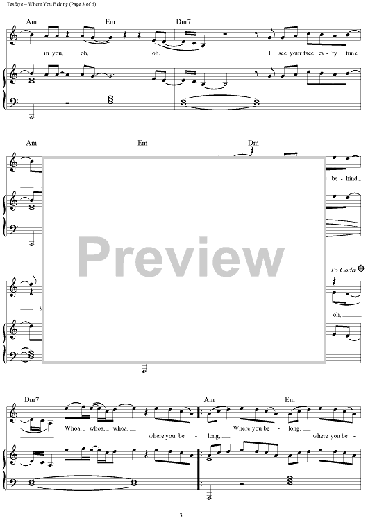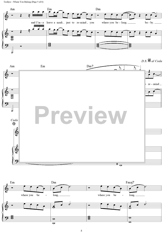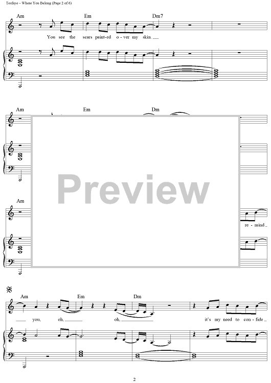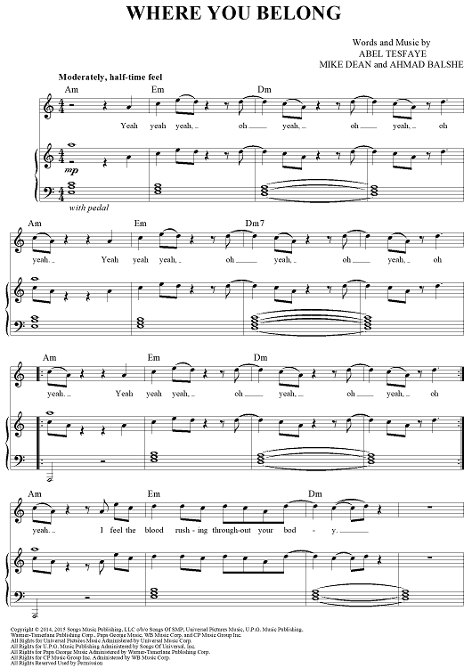 Digital Sheet Music for Where You Belong by Ahmad Balshe, Abel Tesfaye, Mike Dean, The Weeknd scored for Piano/Vocal/Chords; id:451826