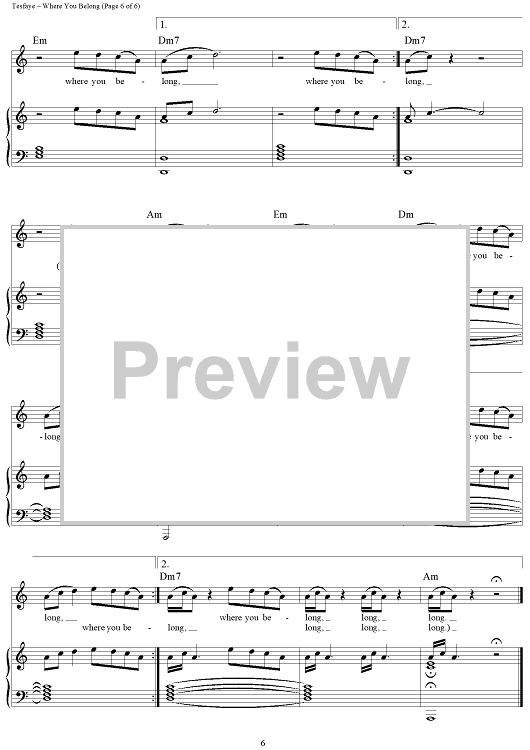 "Where You Belong" Sheet Music by The Weeknd