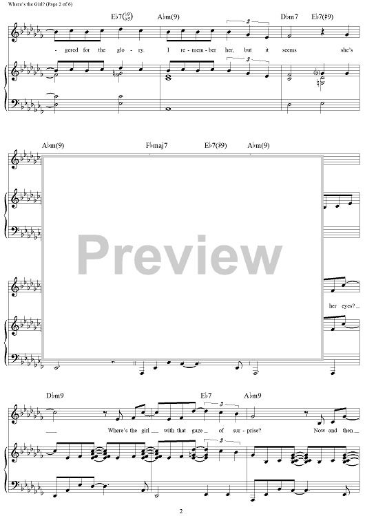 Digital Sheet Music for Where's the Girl? by Frank Wildhorn, Nan Knighton scored for Piano/Vocal/Chords; id:234620