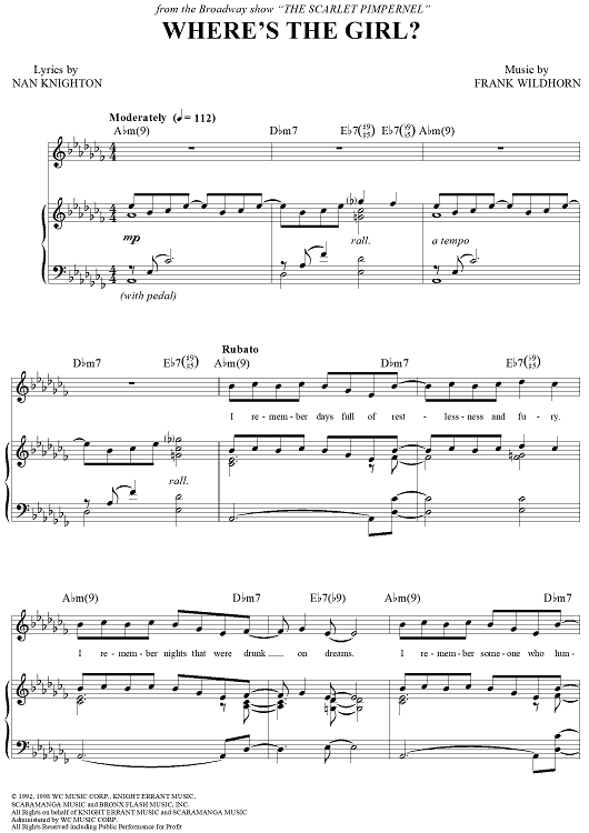 "Where's the Girl?" Sheet Music by Frank Wildhorn
