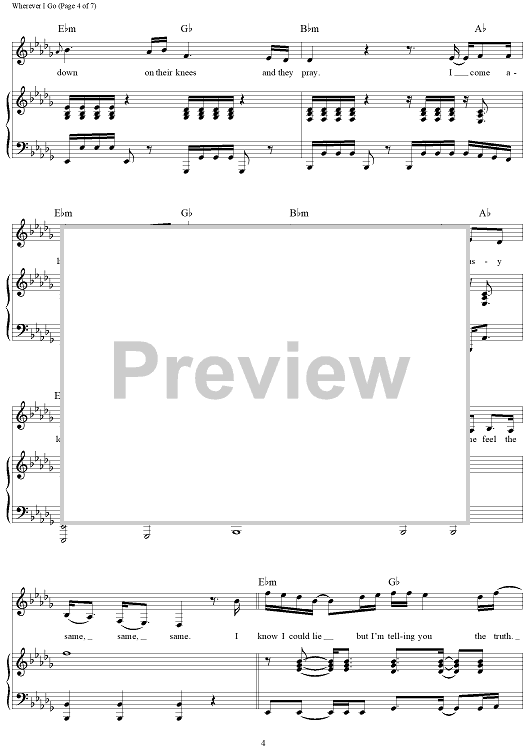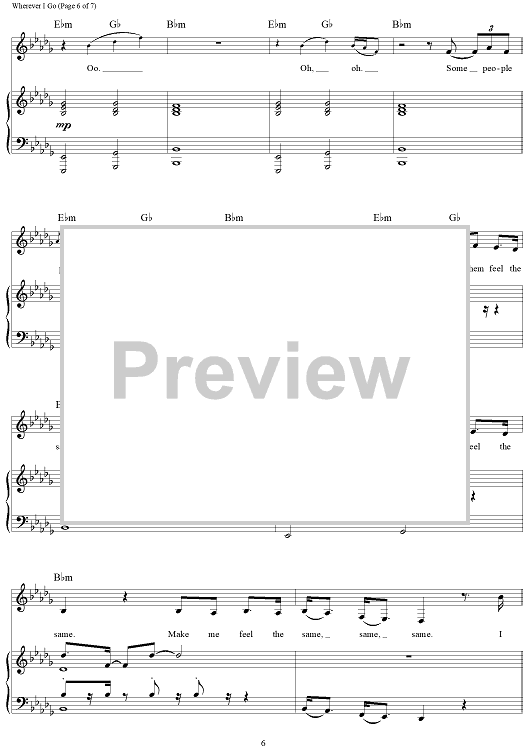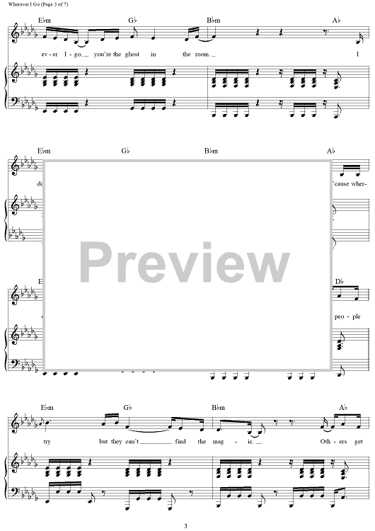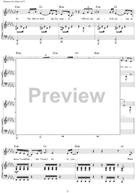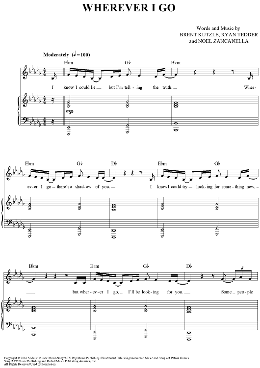 Digital Sheet Music for Wherever I Go by Ryan Tedder, OneRepublic, Brent Kutzle, Noel Zancanella scored for Piano/Vocal/Chords; id:458969