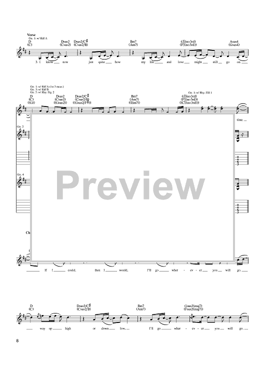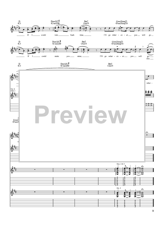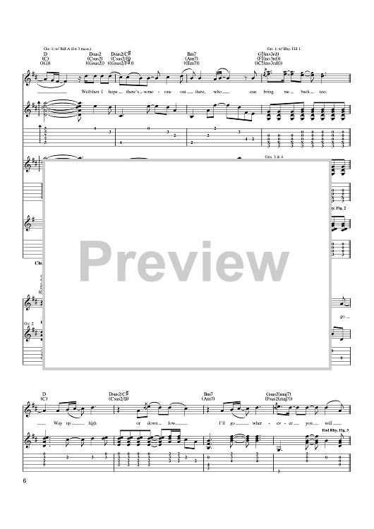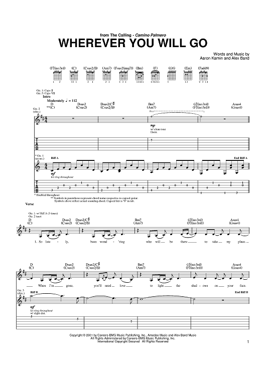 Digital Sheet Music for Wherever You Will Go by Aaron Kamin, Alex Band, The Calling scored for Guitar Tab; id:367808