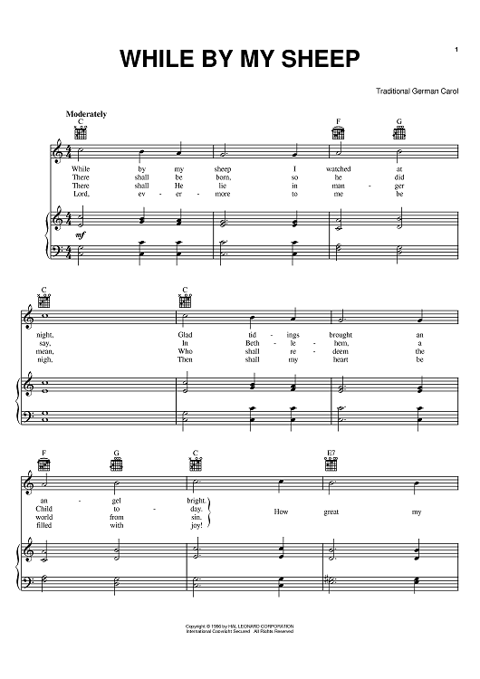 Digital Sheet Music for While By My Sheep by scored for Piano/Vocal/Chords; id:398016