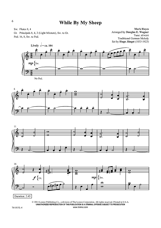 Digital Sheet Music for While By My Sheep by Mark Hayes, Traditional German Melody, Douglas Wagner scored for Organ Solo; id:437246