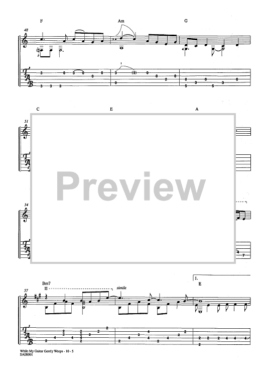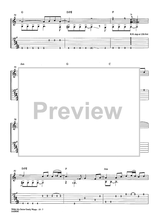 Digital Sheet Music for While My Guitar Gently Weeps (No MP3) by , George Harrison, Laurence Juber scored for Guitar Tab; id:452038