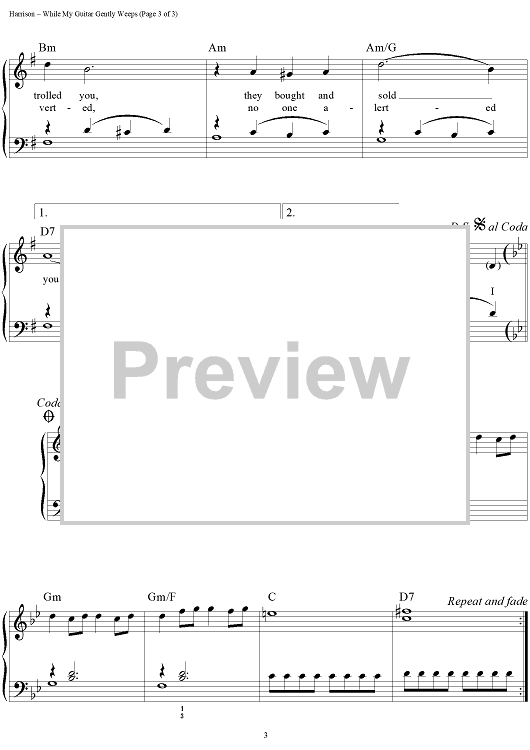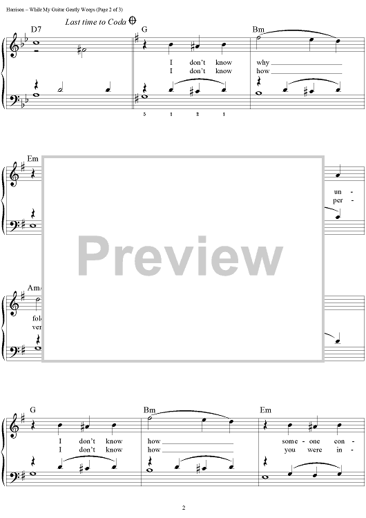 Digital Sheet Music for While My Guitar Gently Weeps by The Beatles, George Harrison scored for Easy Piano/Vocal/Chords; id:451999