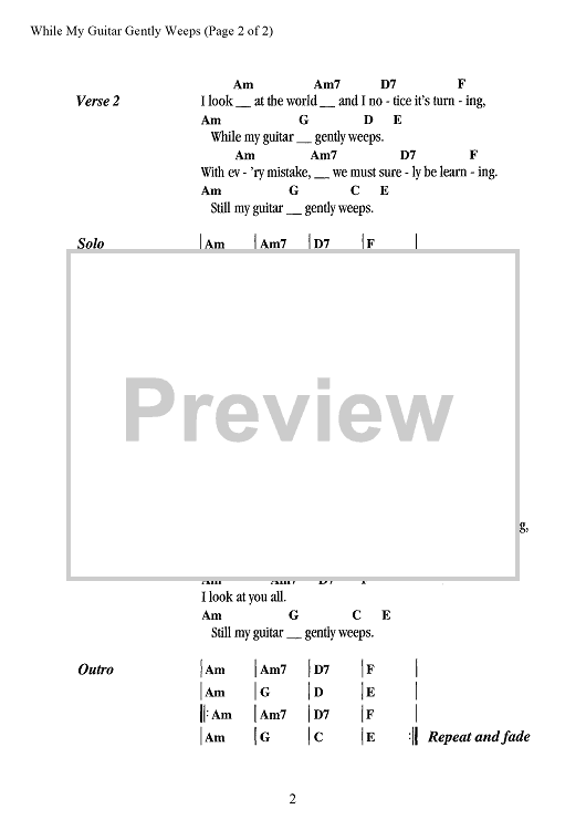 Digital Sheet Music for While My Guitar Gently Weeps by The Beatles, George Harrison scored for Ukulele/Vocal; id:466540